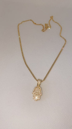 hand of Fatima dipped in 14k gold With cz stones on a Cuban link chain