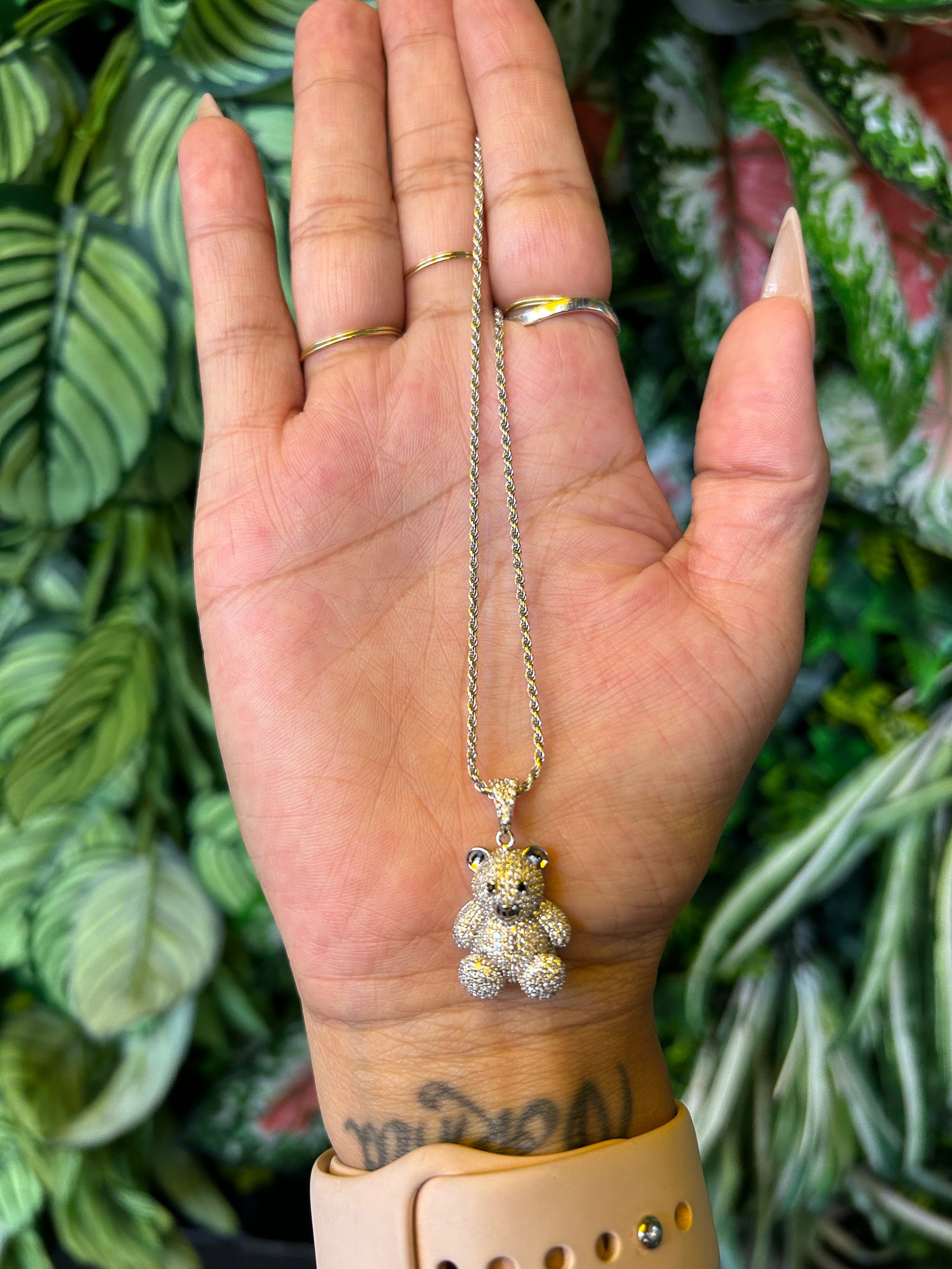 Small Blinged out teddy on a sterling silver 925 18 inch necklace.
