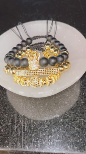Trio Matt black obsidian bracelet. Unisex with adjustable pull strings
